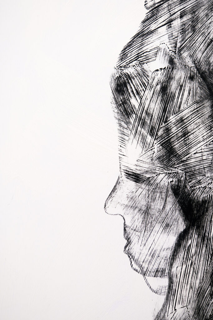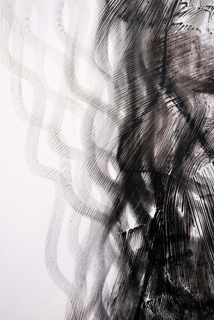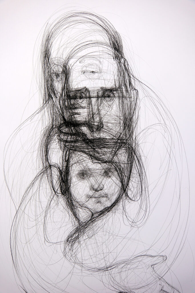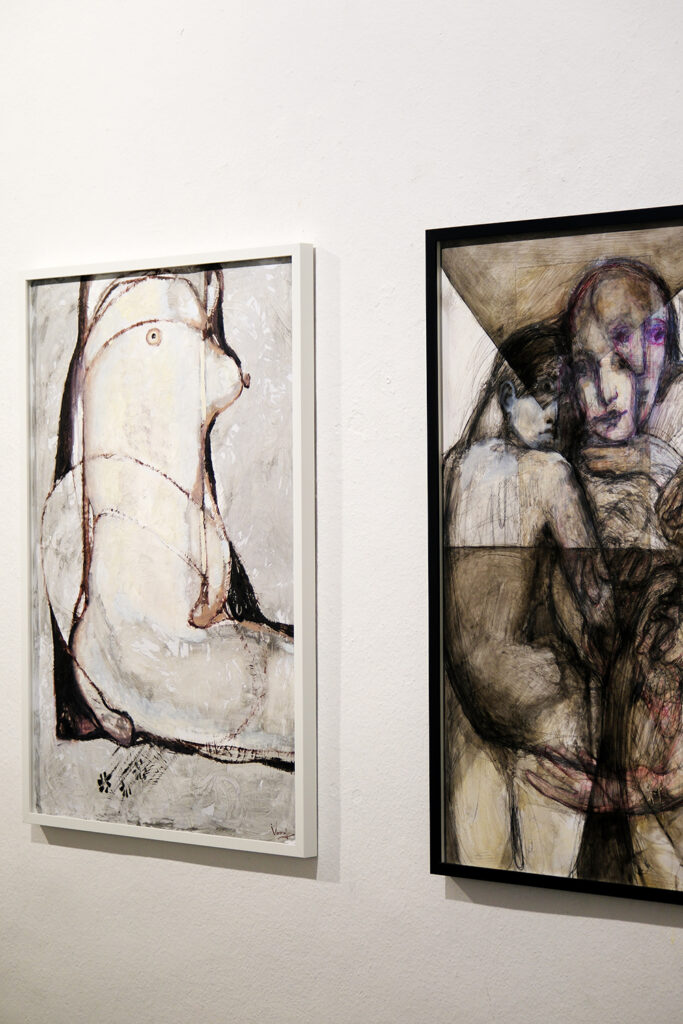 Ihre Arbeiten der letzten zwei Jahre waren hauptsächlich ihrem Mann gewidmet, der 2022 verstorben ist. In ihren Werken geht es um emotionale und spirituelle Intimität, die sowohl zwischen geliebten Menschen als auch zwischen Fremden, die sich gegenseitig helfen, entsteht. Es geht um Empathie und darum, nicht gleichgültig zu sein. Es ist die Art von Nähe, die nichts mit Intimität zu tun hat, es geht um Vertrauen und Verständnis, um Hilfe in den schwierigsten Zeiten und um Menschlichkeit. Es geht um das, was Menschen brauchen, die die Strapazen des Krieges durchmachen, um Unterstützung und den Glauben daran, dass man auf diesem Weg des Kampfes für die Freiheit nicht allein ist.
